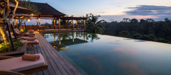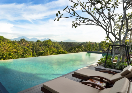 This is arguably the hotel’s most famous feature. The long infinity pool sits high above the treetops, offering an unobstructed, panoramic view of the lush Ubud jungle. It is a favorite spot for photography, especially during sunset when the sky reflects off the water.