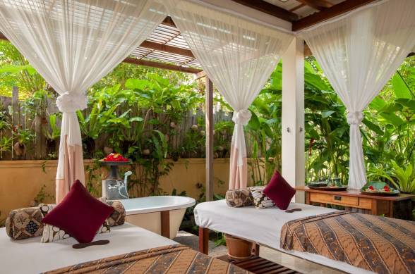 While many luxury hotels offer high tea, Komaneka’s version is uniquely humble yet sophisticated. Served daily, it features Jajan Pasar (traditional Balinese market snacks) like laklak or pisang rai, served on handmade ceramics.