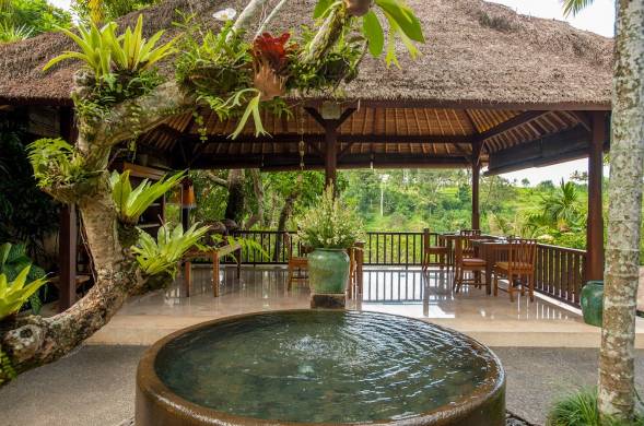 Komaneka at Tanggayuda is famous for its multi-tiered emerald green pools that seem to spill directly into the jungle canopy. The main pool is a masterpiece of design, offering a panoramic view of the lush river valley.